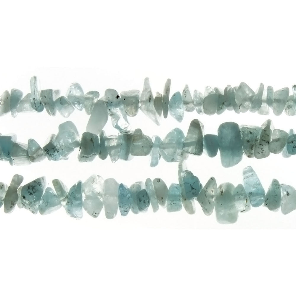 This new lot of Genuine Aquamarine Chips are gorgeous and 100% natural! Light natural aqua blue color. Lots of chips on the 36 inch strand. Average actual size of chips 4x8-mm.